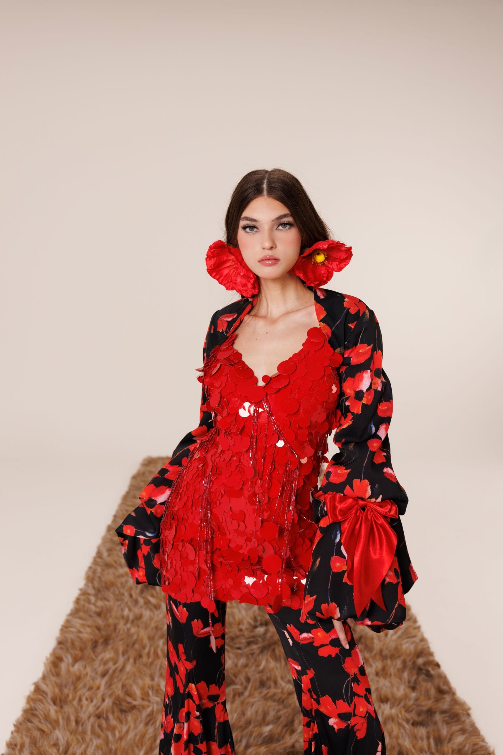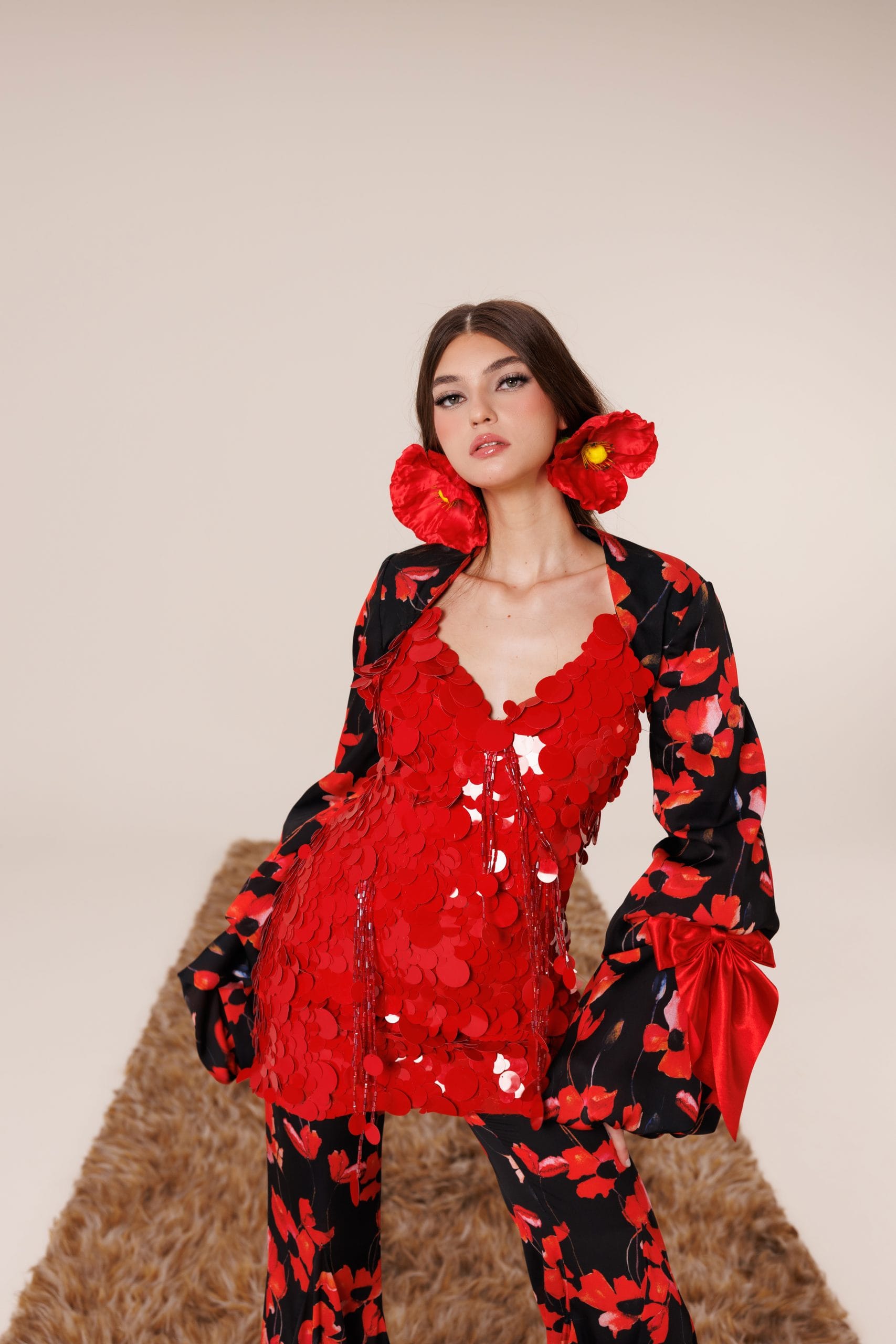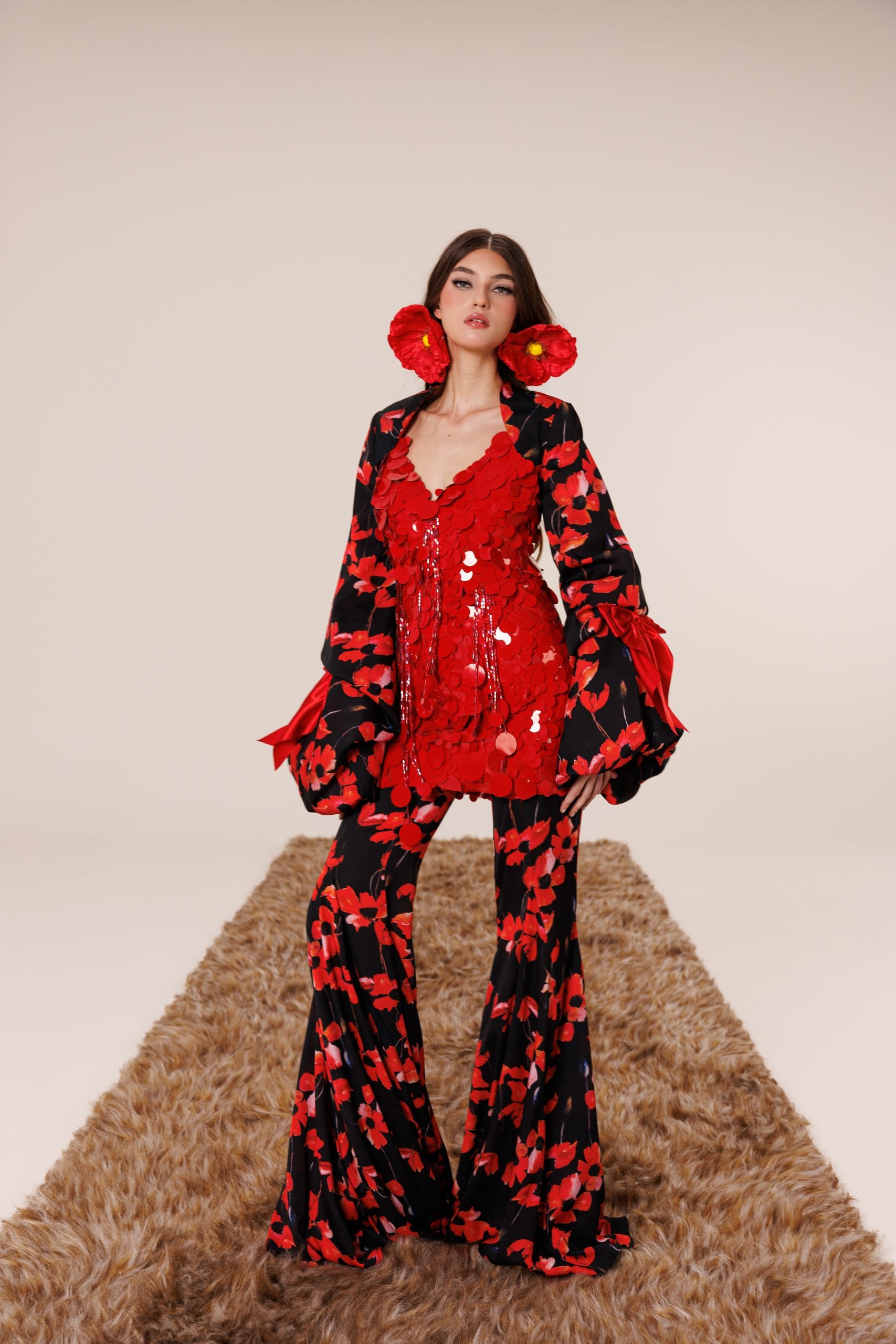 %70 ipek ‘Alhambra Ember’ kasnak payet işlemeli takım ile Granada bahçelerinin ateşli zarafetini keşfedin. Soul of Leila’nın lüks tasarımını koleksiyonunuza dahil edin.