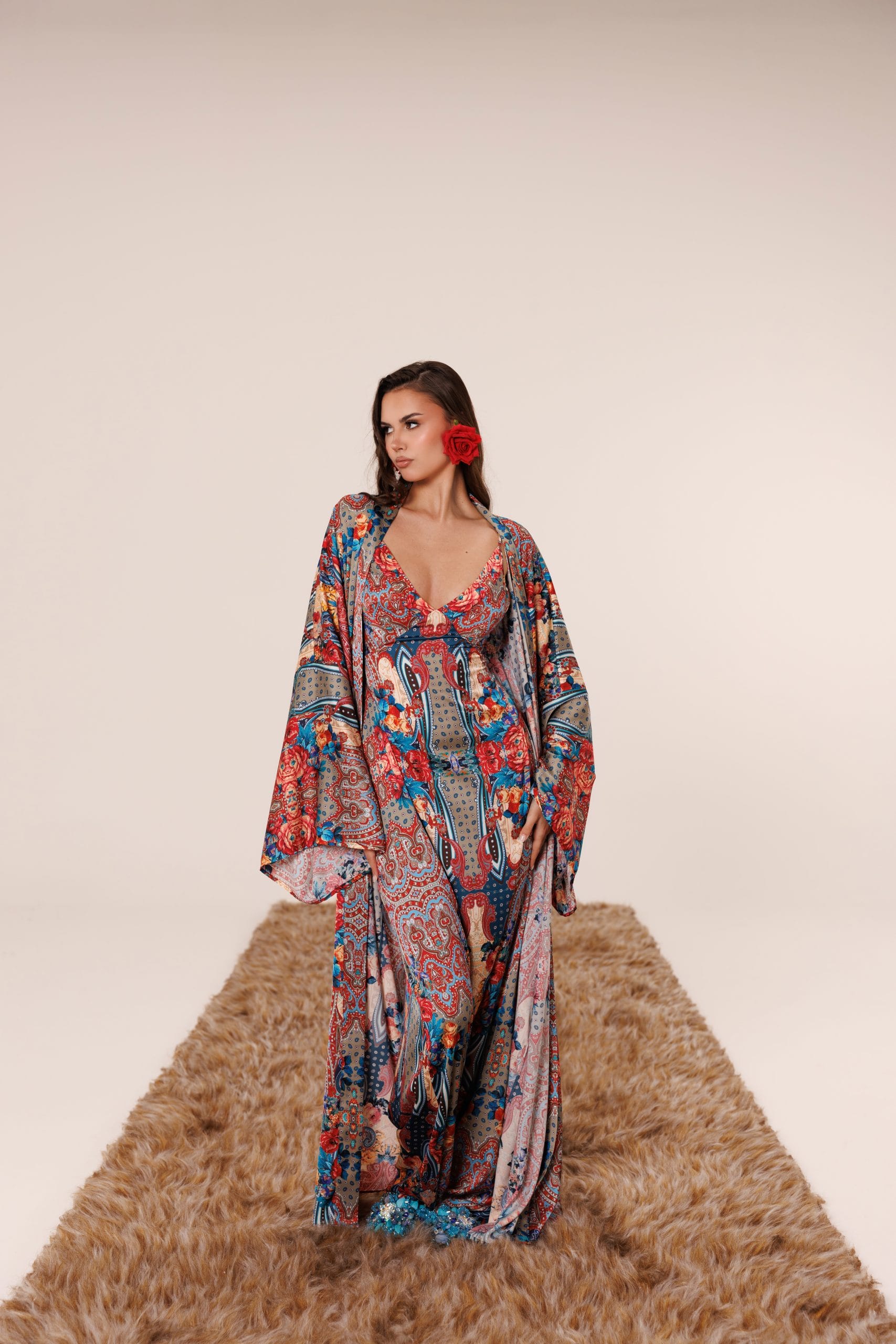 japon ipek ‘Sevilla Bloom’ çiçekli takım ile baharın enerjisini ve lüksün saflığını hissedin. Soul of Leila’nın romantik boho-chic tasarımını koleksiyonunuza ekleyin.