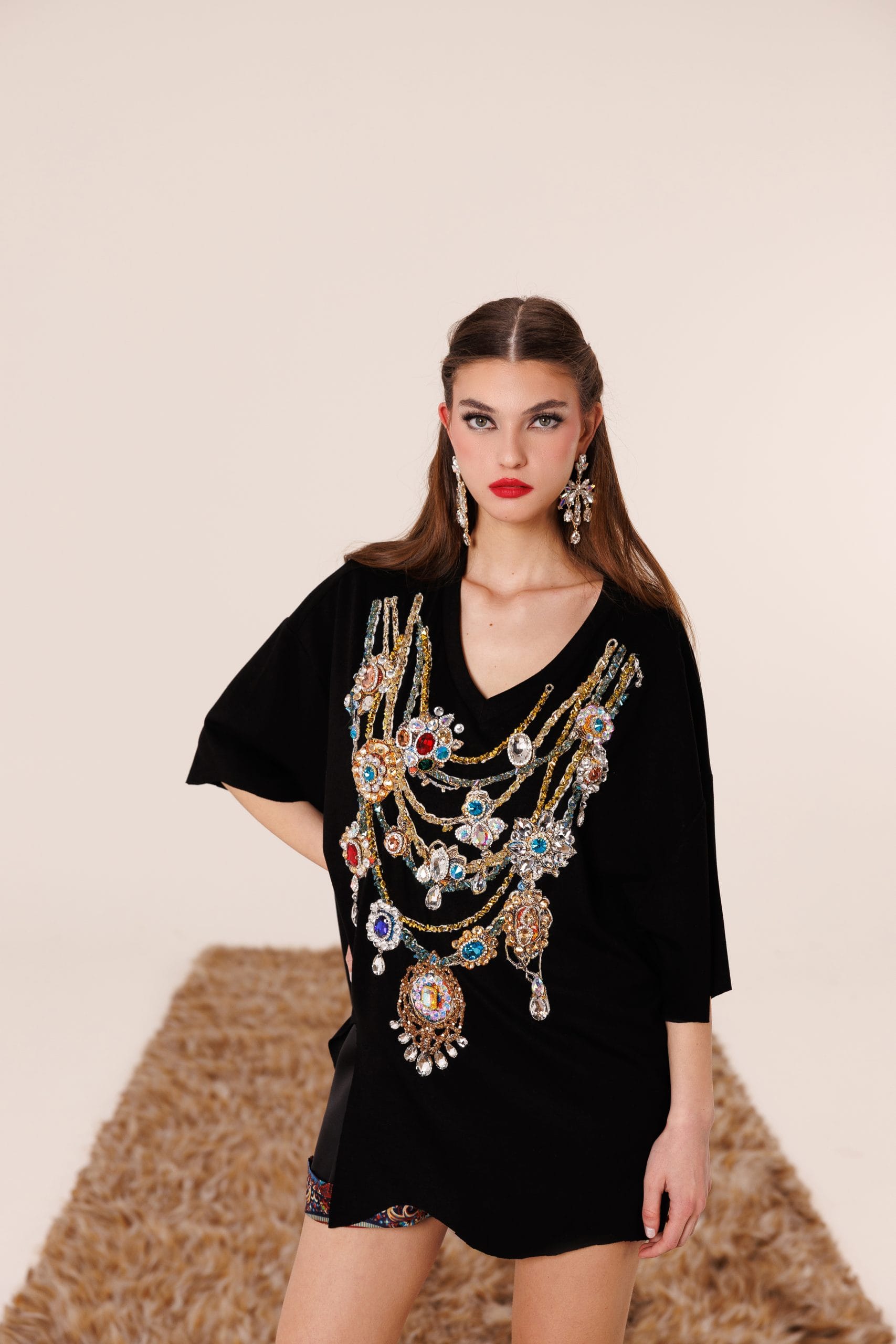The Jewel Tshirt, klasik bir tişört formunu couture dokunuşlarla yeniden tanımlar.